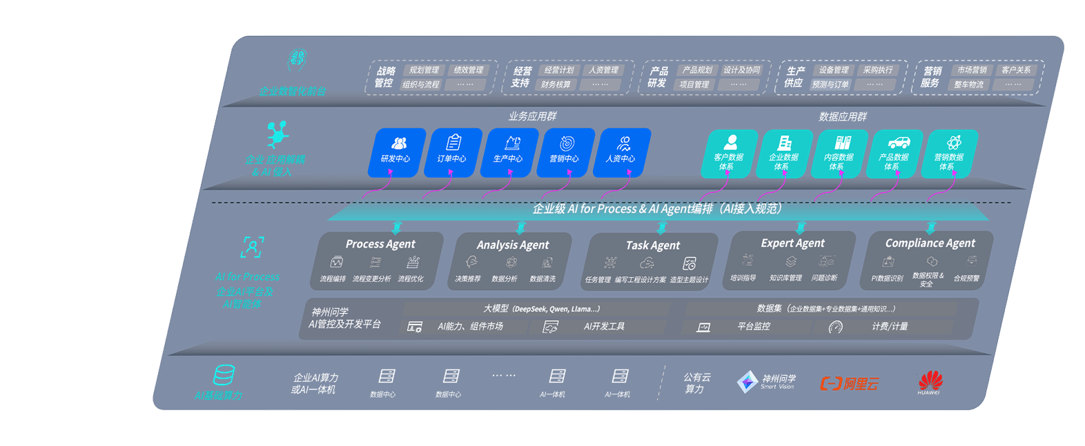 意昂2问学智车解决方案是一套基于AI技术的汽车行业智能化系统,,覆盖从底层算力到顶层AI应用的全栈方案。。。。方案由算力层、、模型层和应用层组成:算力层,,方案支持多种一体机配置,,,,具备云端灵活部署、、、多云适配以及动态优化计算资源的能力;模型层,,,意昂2问学平台版提供了企业级AI应用一站式构建与管理平台,,,支持基于后训练强化技术的汽车企业专属模型的训练、、、、评测和运营;应用层,,意昂2问学DeepSeek版提供包括超级员工、、、智能招采、、、智能营销、、、智能客服、、AI for BI等一系列解决方案,,,可助力汽车行业实现数字化转型,,,,让管理更智能、、、响应更敏捷。。。。